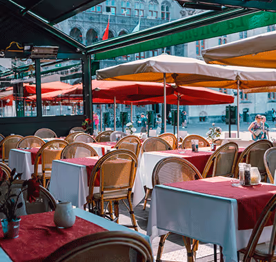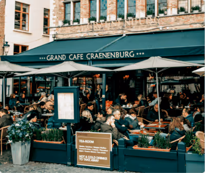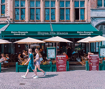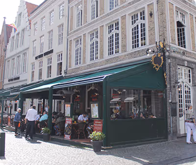 Eet en drink gezellig in hartje Brugge met uitzicht op de Markt van Brugge.