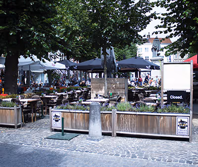The Grand Café Belfort is a typical Belgian restaurant on the Market Square of Bruges. Come and taste our good food or large collection of Belgian beers!