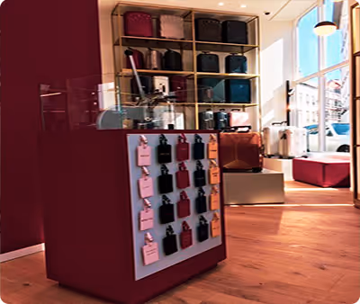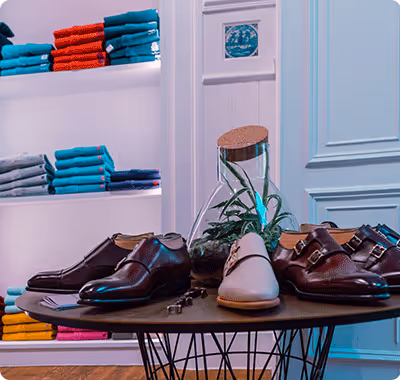 A selection of trendy shoes and bags like Santoni, Tod's, Marc Jacobs, ... A fashionable place in the heart of Bruges.