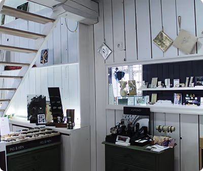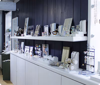 Wij maken en ontwerpen zelf onze juwelen. Hierbij werken we met natuursteen, kurk, glas, schelpen ... Daarnaast verkopen wij ook accessoires en decoratie-artikelen.